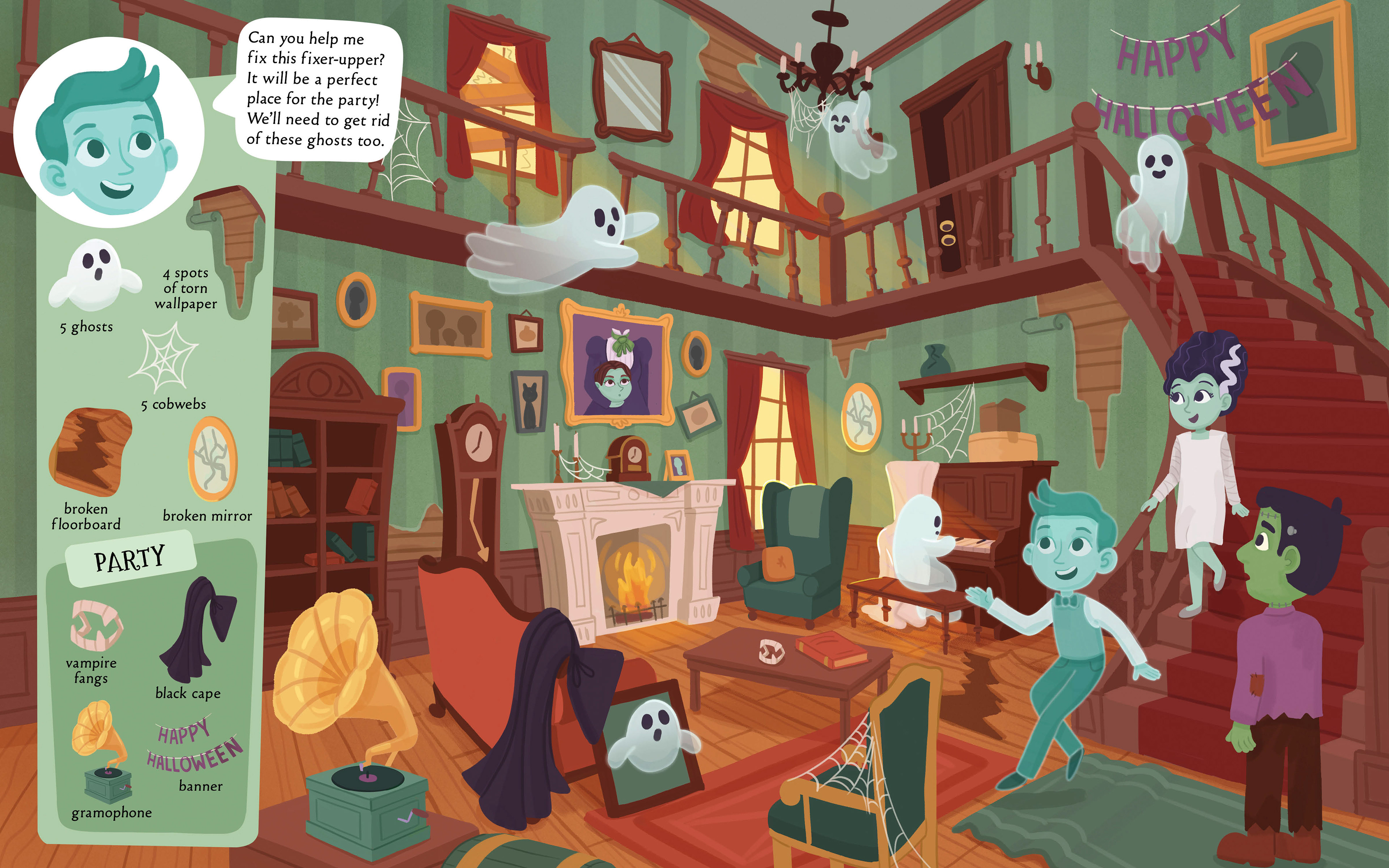 Join this crew of silly monsters on the Great Monster Hunt to explore 8 unique spooky searches to help get ready for the party.